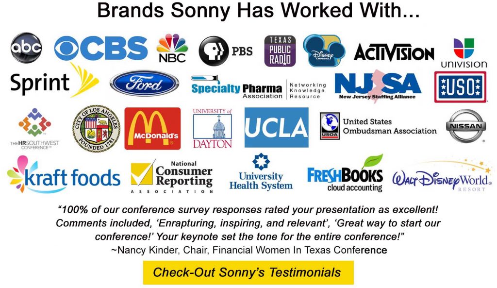 Top Texas Motivational Keynote Speaker Sonny Melendrez has inspired audiences at thousands of events across San Antonio, throughout Texas, and around the world with his trademark enthusiastic energy.